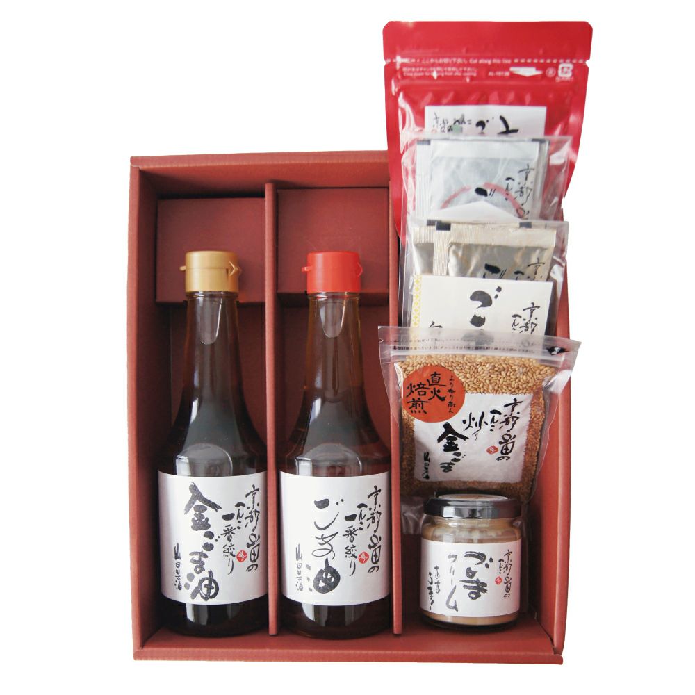 香ばしい金ごま油とごま油をはじめ、甘味・辛味・香味を取り揃えた七種の味わい。