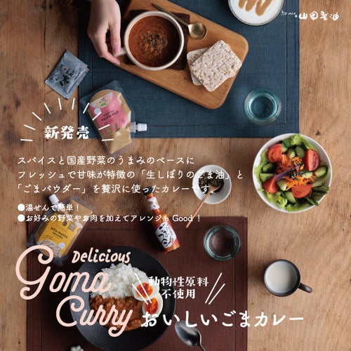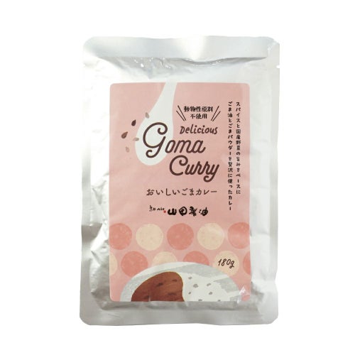 フレッシュで甘味が特徴の「生しぼりのごま油」と「ごまパウダー」を贅沢に使ったカレーです。