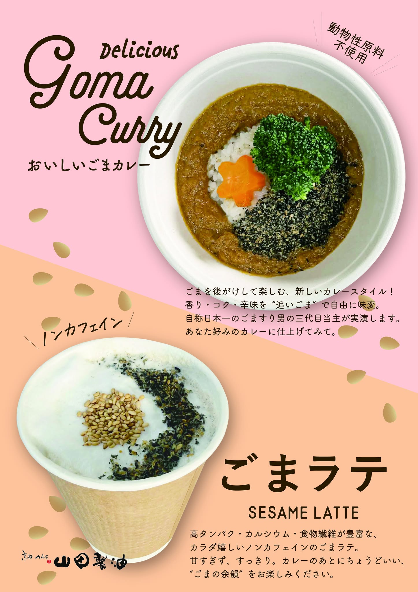 山田製油のブースでは「おいしいごまカレー」「ごまラテ」をご用意します。