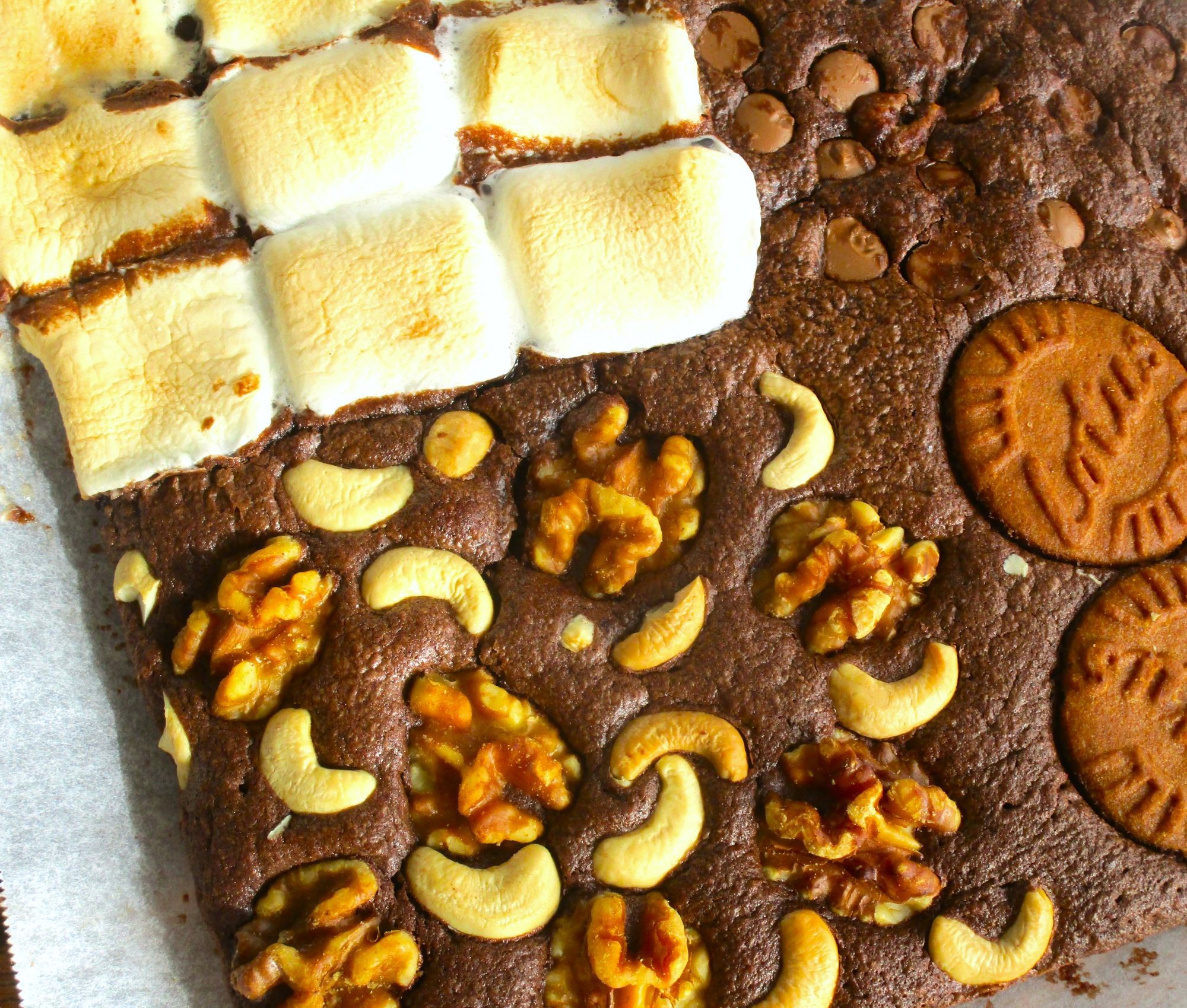 上の画像は、ナッツ、マシュマロ、市販のビスケット、チョコチップ。