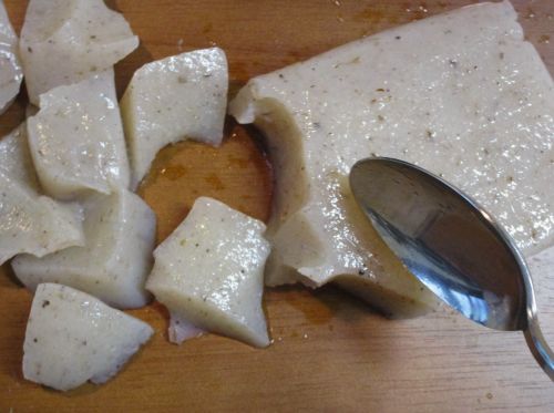 (つるっとして味がしみにくい表面の切り口がざらっと粗く