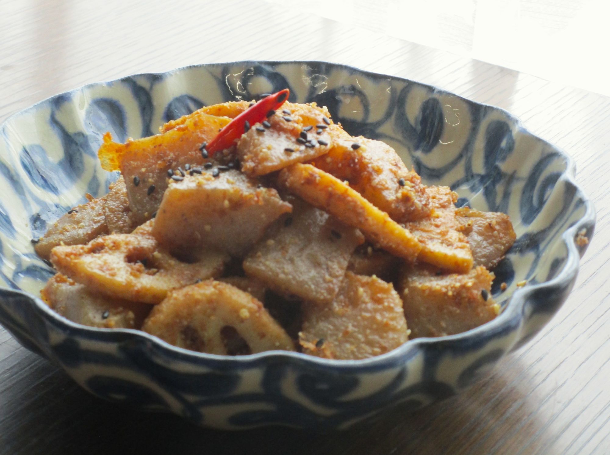 むちっシャキッとしたれんこんを合わせた、ごま風味の煮物を紹介いたします。