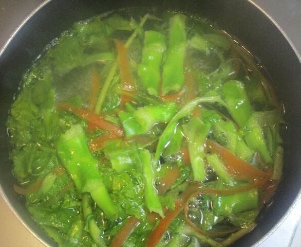 ※ブロッコリーの皮も栄養豊富なので、細切りにして一緒に炒めてもOKです。が、ときにかなりかたいことも、筋っぽいこともあります。我が家では、べジブロスにしています。にんじんの皮や玉ねぎの皮などと一緒に水で(昆布と塩と酒少々を加えて)20~30分弱火で煮出し、野菜だし汁として使います。