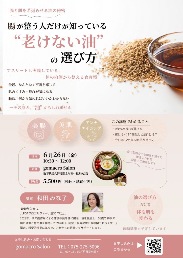 【ゴマクロサロンWS】腸が整う人だけが知っている、“老けない油”の選び方|アスリートも実践する食習慣とは