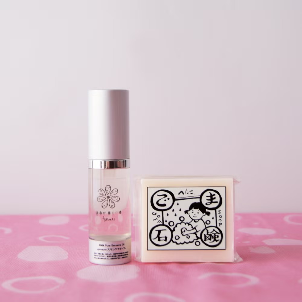 スキンケアオイルとごま石けんを組み合わせた